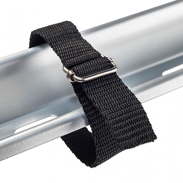 Krovni nosač za bicikl s bravicom čelični sivi CRUZ G na prihvatu za okvir bicikla izrađen od čelika u sivoj boji. Odgovara za prihvaćanje na većinu okvira bicikala, a kotače sigurno veže sa sintetičkim remenjem za nosač bicikla. Maksimalno zaštićen od korozije.