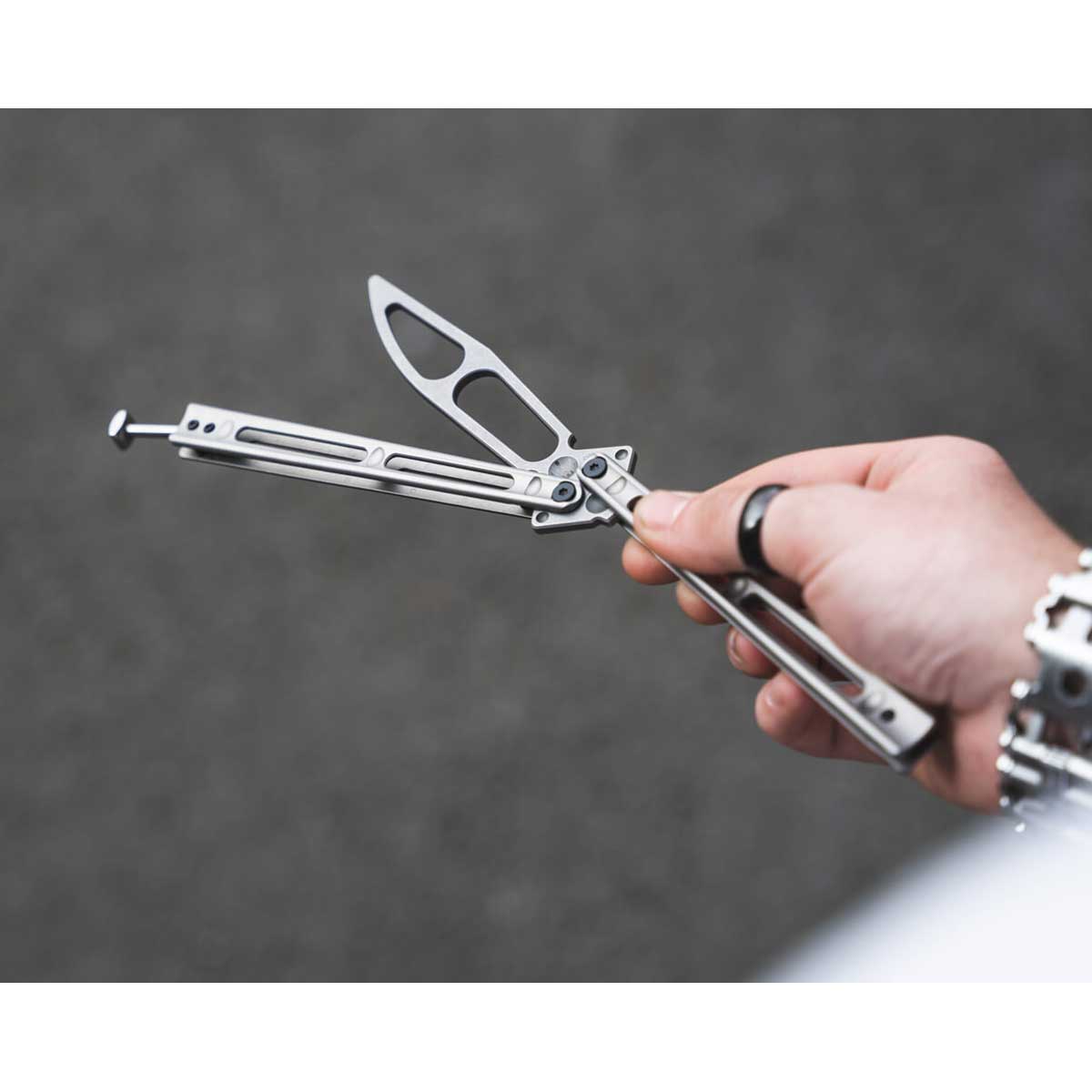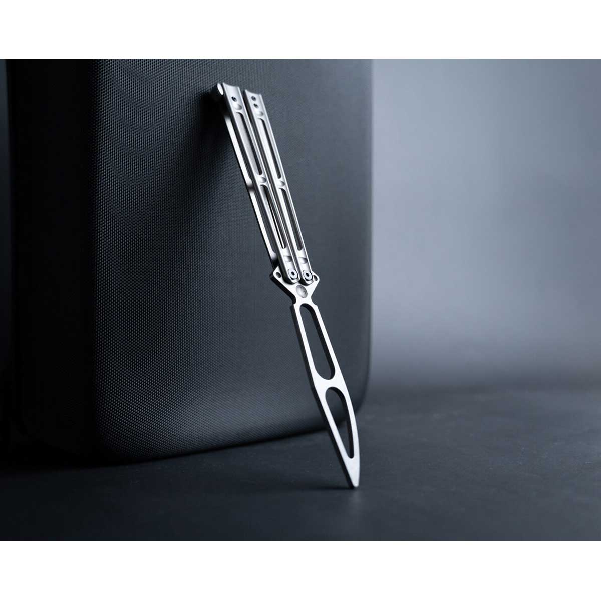 Leptir nož za treniranje Boker Plus Papillon Balisong konstrukcijom odgovara pravom balisong nožu, ali umjesto prave oštrice ima tupu zamjenu. Drške Papillon leptir noža su iste kao i kod pravog, izrađene od nehrđajućeg čelika šupljeg dizajna i mat završne obrade. Leptir nož ili balisong ime dolazi od jednostavnog mehanizma sklapanja u dvostruku dršku koji je puno manje podložan skupljanju nečistoća od drugih mehanizama. “Clip point” oštrica s kugličnim ležajevima je izrađena od čelika 420 i isto kao i drška ima mat završnu obradu. Lažna oštrica lagano zaobljena na rubovima ima velike šupljine za jednostavno razlikovanje od pravih oštrica i da bi se težinom poistovjetila originalnom Balisong dizajnu. Naglašeni “ricasso” naglašava taktičke osobine ovog noža za treniranje. Papillon Balisong dolazi s visokokvalitetnom najlonskom torbicom Boker Plus s patent zatvaračem.