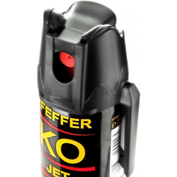Pepper sprej za samoobranu Pfeffer-KO JET je najučinkovitiji sprej za samoobranu na bazi ekstrakta ljute papričice. Sadrži vrlo jak prirodni koncentrat OC. Mlaz tekućine je idealan u situacijama gdje je potrebno precizno prskanje napadača kao što su unutrašnjosti trgovine, trgovački centri, klubovi, vozila, stanovi i slično. Također se koristi u situacijama kada vjetar može vratiti nazad pepper sprej ili maglu.